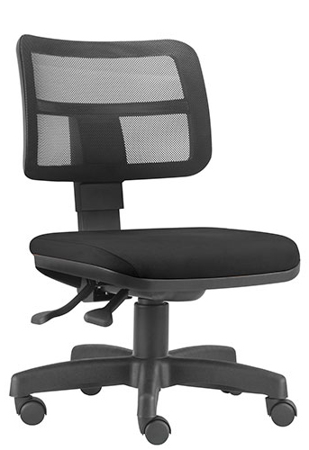 Cadeira giratória com encosto revestido em tela flexível aberta, à base de poliéster de cor preta. Mecanismo Evolution de duas alavancas com movimento de inclinação/contato permanente do encosto.